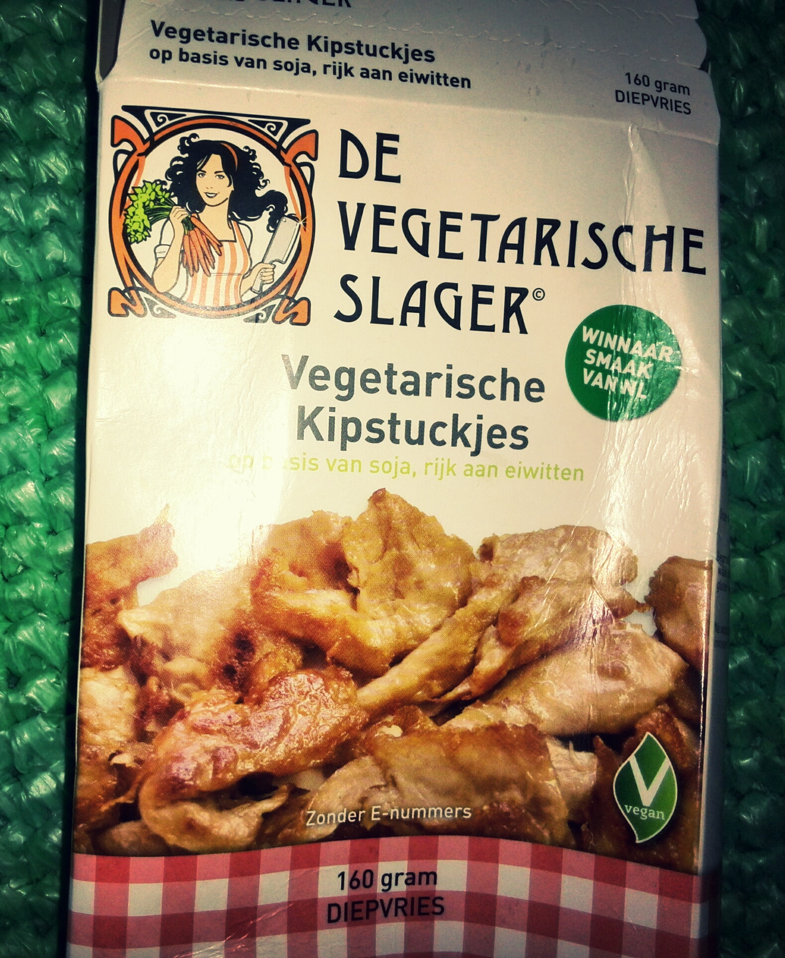 Ik ben zelf sinds drie jaar vegetariër dus er is weinig heldhaftigs aan dat ik vandaag geen dieren eet. Maar ik kan wel twee vriendinnen (de gezusters Gravesteijn) van mij in aanraking laten komen met een interessant substituut voor kip. Namelijk de vegetarische kipstukjes van De Vegetarische Slager.